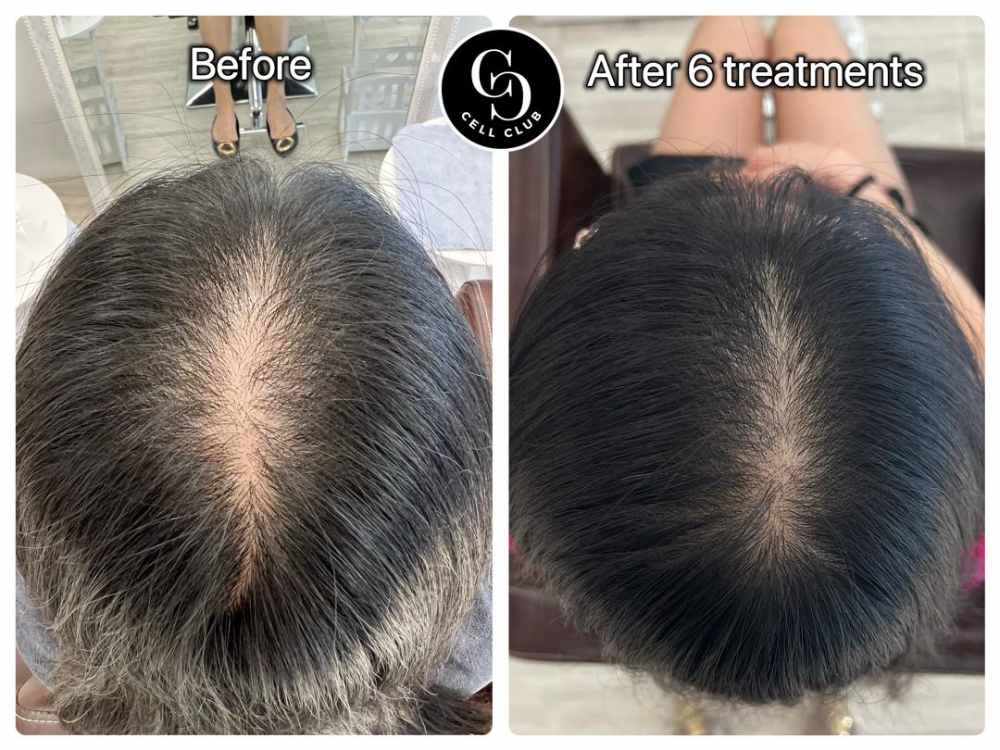Our stem cell hair growth treatment rebuilds scalp cells, with visible results after just one session and significant hair growth after seven sessions.